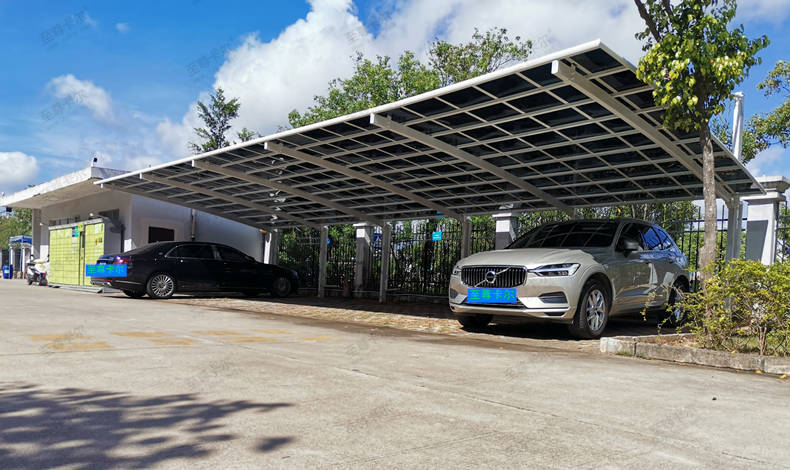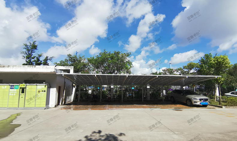 這種結構比膜結構車棚工程的優勢在于,耐力板的強度高,是普通玻璃的200倍,可抗12級大風和20cm積雪,不易損壞,不易漏雨滲水。而且至尊卡爾還在耐力板表層均勻涂抹了抗紫外線涂層,有效隔熱防曬的同時,還能有效延緩板材衰老。