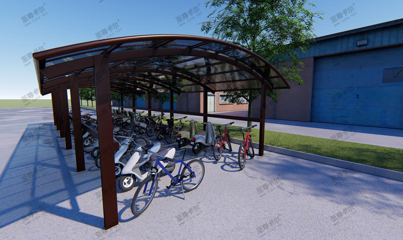 自行車車棚效果圖,從某種程度上決定了自行車棚最后的選擇樣式和選材,因此至關(guān)重要。今天,至尊卡爾就來帶大家看幾款最新樣式自行車棚圖片,同時(shí)也為大家介紹一下這幾種自行車車棚效果圖的材質(zhì)詳細(xì)細(xì)節(jié)。