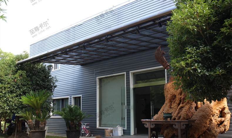 陽光板雨棚的雨棚材料一般為中空材質,這種材質更容易發黃發脆,帶有臟污不好清潔,用一段時間后很不美觀,現在還有些陽光板也不做中空結構了,很容易被迷惑,有些無良銷售會用陽光板雨棚來代替耐力板雨棚,在購買時一定要記住讓廠家出具相關證明哦耐力板雨棚做雨棚材料,板材也分質量,要警惕使用廢舊回收板材重新制作來以次充好,這種二次加工的耐力板雨棚質量和陽光板雨棚差不多。最好的一種耐力板雨棚就是全新進口德國聚碳酸酯粒子制作的板材,使用15年不會出現發黃變脆起霧之類的問題。所以耐力板雨棚的原料很重要。